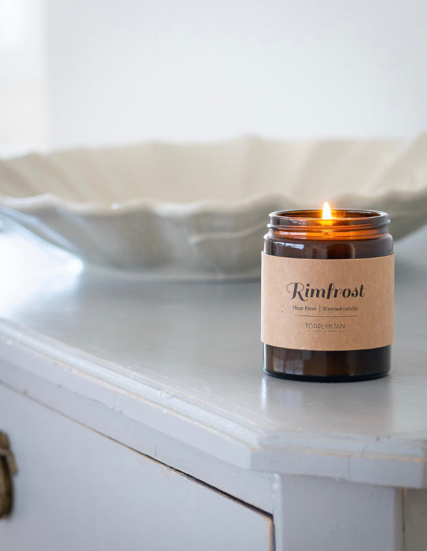 Torplyktans doftljus Rimfrost kombinerar sandelträ och ceder för att skapa en djup och jordnära bas. Vanilj tillför en känsla av värme och komfort som ytterligare förstärks av en mild ton av mysk. Resultatet är en varm och mjuk doft med en djup och elegant karaktär som omfamnar dig med en känsla av lugn och lyx.