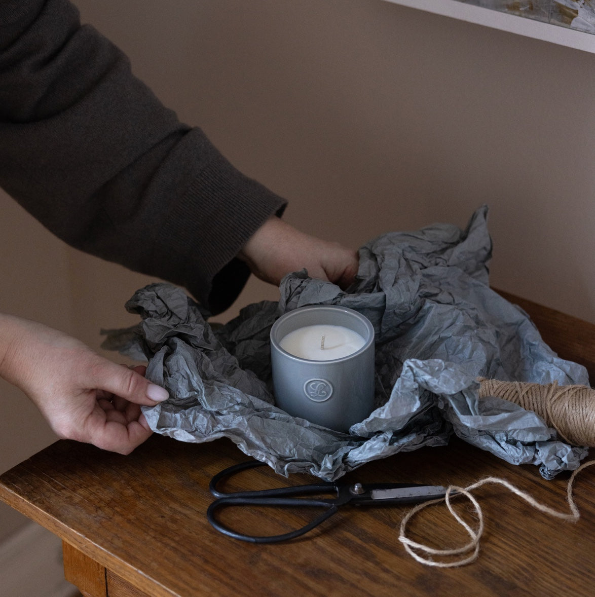 Grått keramikkrus, vitt vax